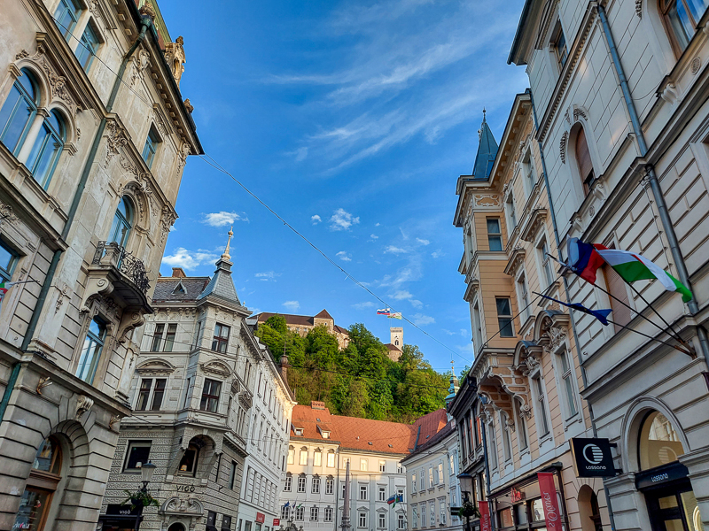Historia zamku to historia całej Słowenii w pigułce. Celtyckie grodzisko, rzymska strażnica, średniowieczna twierdza, renesansowa rezydencja, austriackie koszary, jugosłowiańskie więzienie, a teraz – centrum kulturalne. W zamkowej wieży zegarowej od XVI wieku mieszkają kolejne pokolenia kotów. Obecny futrzasty rezydent ma na imię Tečko i wita przybyłych przy wejściu. Wieczorami zamek podświetlany jest na różne kolory – na zielono podczas świąt narodowych czy na różowo w październiku dla świadomości raka piersi. Jest to więc nie tylko zabytek pokryty kurzem historii, ale też żywa część miasta, która reaguje na współczesność.