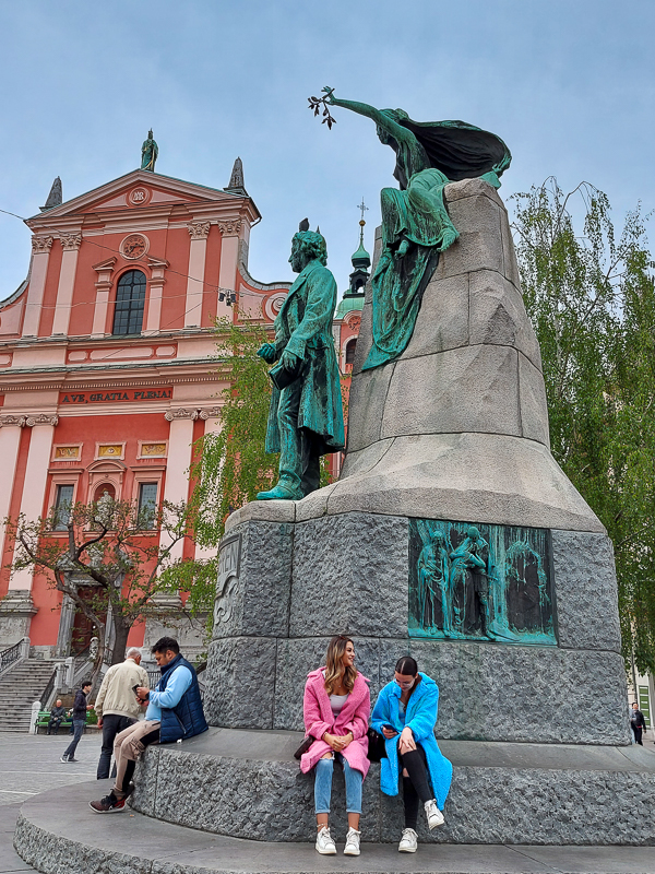 Z kolei schody przed kościołem franciszkanów na Placu Prešerena to nieoficjalna scena miasta – tu grają uliczni muzycy, tu spotyka się młodzież, a turyści robią pierwsze selfie. Mieszkańcy Lublany lubią mawiać, że kościół ma różową fasadę, gdyż zarumienił się, patrząc na zakochanych na placu. Budowla powstała w XVII wieku, a jej kolor pierwotnie był czerwony, symbolizując zakon franciszkanów. Z czasem pigment wyblakł do odcienia różowego, ale mieszkańcom się spodobał i nie chcieli odmalowywać fasady.