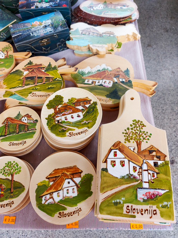 Pod arkadami blisko Mostu Rzeźniczego kupimy najlepsze pamiątki z Lublany. Większość z nich to lokalne rękodzieło.
